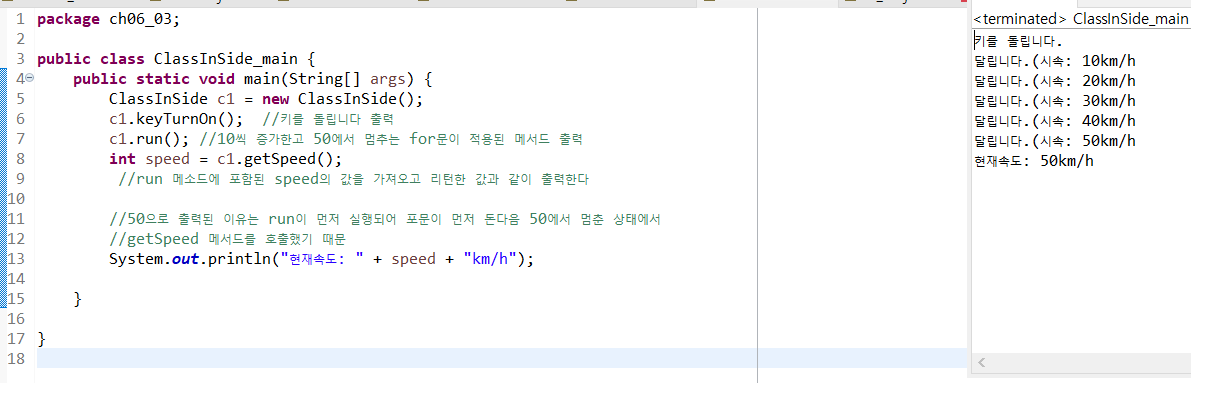 호출 전 다른 클래스에 메소드를 작성 하였다.