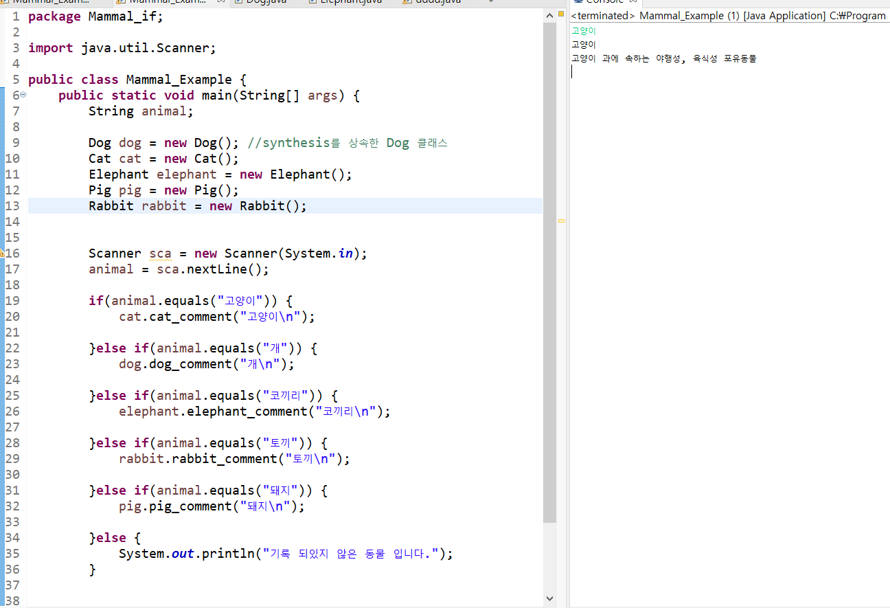 이 작은 프로그램에 상속기능과 scanner, if문을 활용해서 만들어 보았다