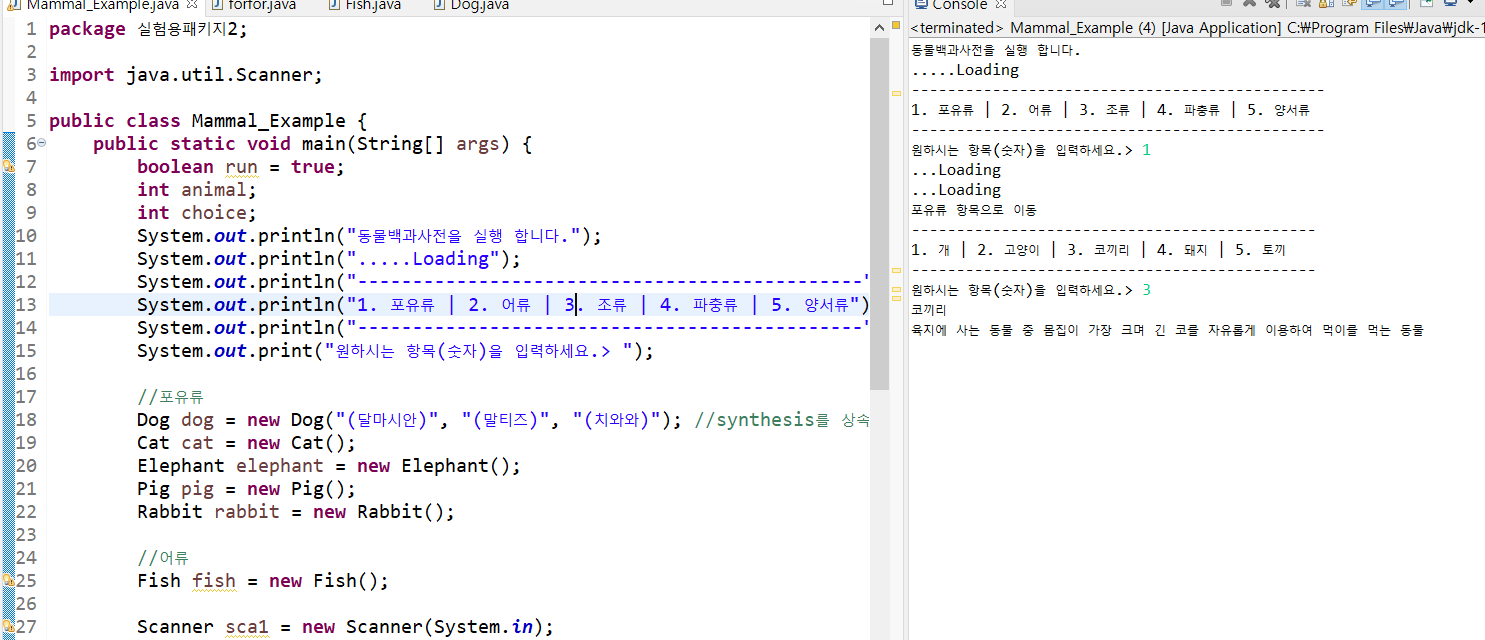 아직까진 포유류항목 까지만 고르는 것밖에 설계가 되질 않는다.