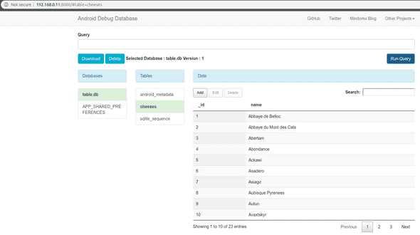 GitHub - Android Debug Database에서 라이브러리에 대한 자세한 내용을 확인할 수 있습니다.